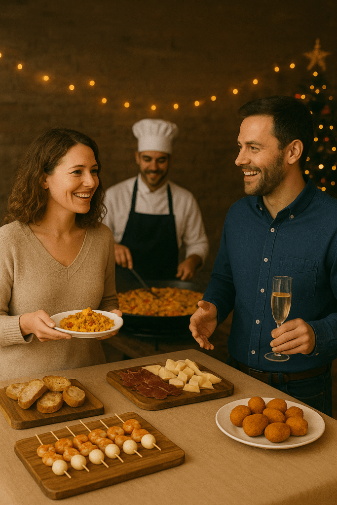Haz de tu celebración un evento único, para ello hemos creado una propuesta gastronómica muy especial con paella gigante y aperitivos especialmente pensados para un evento de navidad inolvidable.